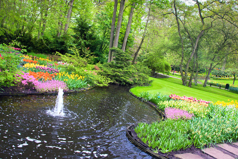 The water gardens can represent a very large artificial pond in the garden. Its area can be left whole, or visually divided into zones by ridges of rocks, bridges, piers, other structures or decor. Another solution of the water garden is few small reservoirs located in cascade or in one plane. They can be independent from each other or united by the waterfall, garden brook, the channel – depending on the style of the garden.